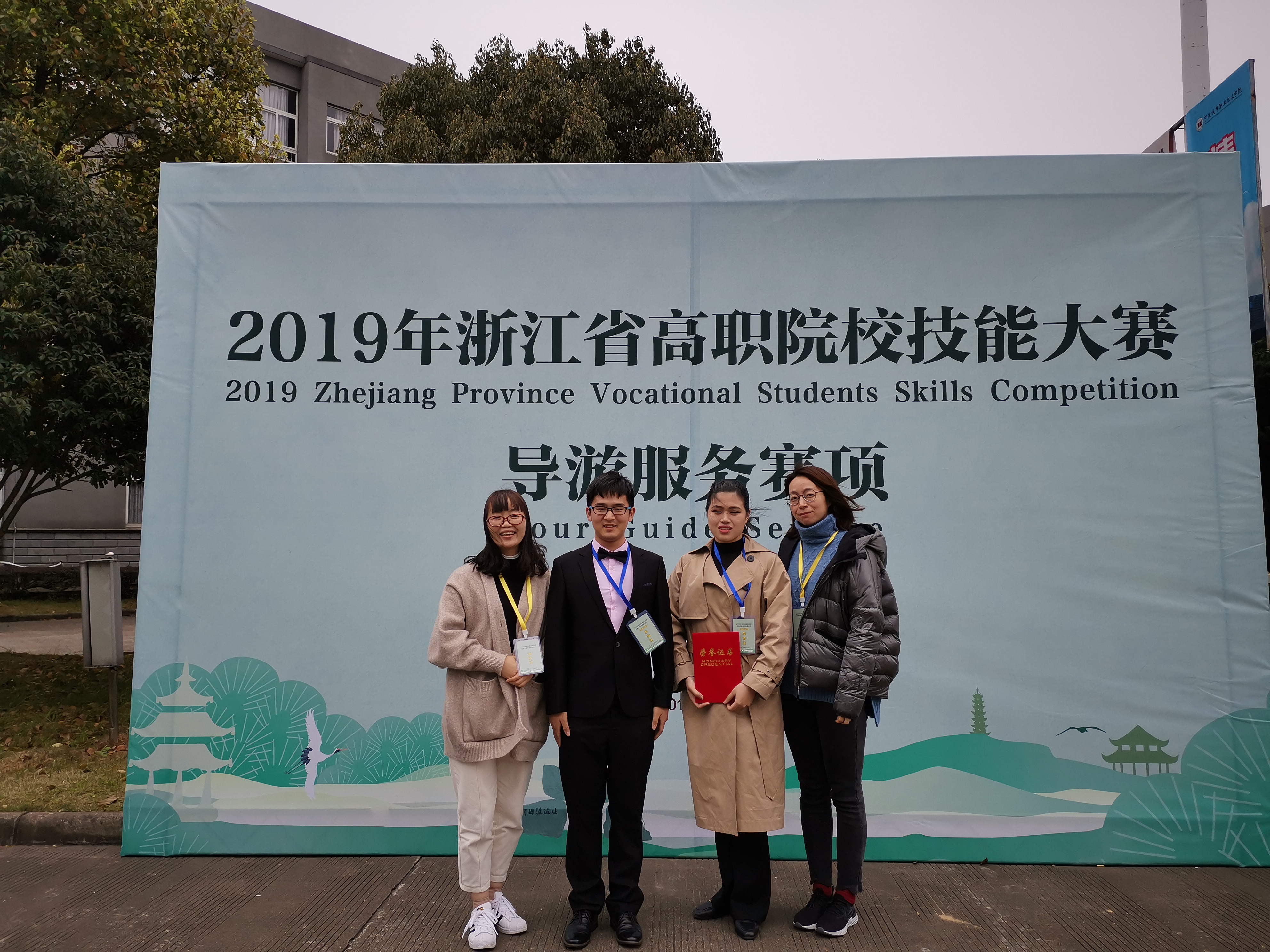 3月22-24日,2019年浙江省高职院校技能大赛“导游服务”赛项在宁波城市职业技术学院举行。管理系17旅游管理专业的邵淑佳、濮智超同学代表学院参加中文组比赛。两位同学在比赛中沉着应战,经过激烈的角逐和努力的拼搏,邵淑佳同学发挥出色,最终获得中文组三等奖的佳绩。