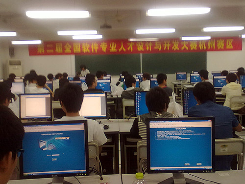 2011年 5月15日,我院计算机系、信息系八位同学参加了由工业和信息化部人才交流中心主办的“国信蓝点杯”全国软件专业人才设计与开发大赛的浙江省选拔赛。经过激励角逐,我院计算机系李遵源、陈强同学分别获java(高职类)、C语言(高职类)一等奖,并取得参加7月中旬北京大学举办的总决赛的资格。於斌(计算机系)、王舜(信息系)获C语言(高职类)二等奖;骆鹏程(信息系)、丁麒攀(信息系)、梁瑞炜(计算机系)获C语言(高职类)三等奖;李星辉(计算机系)获C语言(高职类)优胜奖。