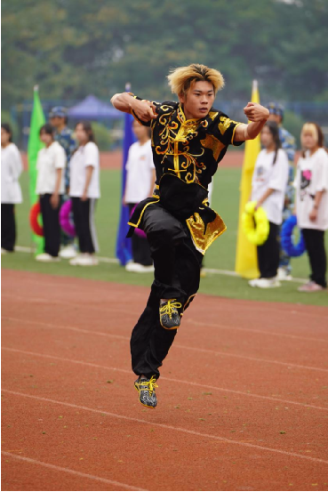 文体汇演彰显青春底色,国粹创新展示长征风采。伴着声声鼓点,同学们展示了舞刀、醉拳、太极、长棍、空翻等,一掌一拳、一开一合、一招一式,刚柔并济,尽显中华传统文化和武术的魅力,展现了青年学子挑战自我、勇往直前的奋进姿态。舞龙表演者以矫健的身姿、灵动的表演,让青春与激情在舞动中交融,让力量与团结在舞动中汇聚。