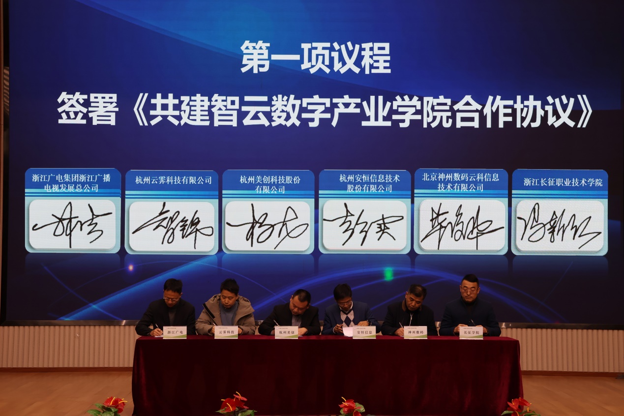 为进一步深化产教融合,推动人才培养模式创新,近日,学校“智云数字产业学院”签约暨揭牌仪式在第一报告厅顺利举行。学校党委书记、常务副校长王其军、副校长冯新红,北京神州数码云科信息技术有限公司毕俊华、杭州安恒信息技术有限公司彭实、杭州美创科技股份有限公司杨龙、杭州云霁科技有限公司智锦、浙江广电集团浙江广播电视发展总公司林洁等出席了此次仪式。