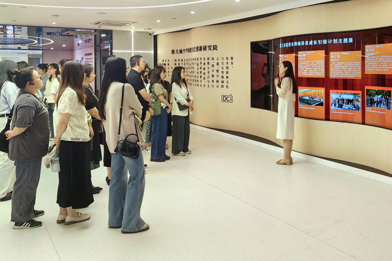 本次展览以“榜样引领 育人铸魂”为主题,生动呈现了浙江省高校辅导员队伍建设的创新实践与丰硕成果,聚焦名师辅导员在思想引领、学业指导、心理护航、职业规划等领域的特色经验。在展览现场,老师们认真参观了“导师群像”“教学实践”“成果示范”三大板块。展览通过图文展示、鲜活影像、实物展品等形式,集中展示了近年来浙江省高校名师辅导员在育人过程中的育人情怀和创新成果。