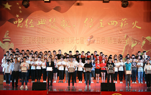 红歌唱响延安精神,党旗飞扬百年辉煌。2016年5月4日下午,我院在体育馆隆重举行了以“唱经典赞歌,传承五四薪火”为主题的浙江长征职业技术学院第七届“红五月”师生大合唱。大合唱邀请了周边共建单位以及各兄弟院校的声乐指导老师担任评委。学院执行院长、正院级巡视员洪永铿,学院副院长杜宝山,党委副书记、副院长王其军,党委委员、工会主席洪骏,党委副书记、纪委书记张乐弟等学院领导出席本次活动。现场1000多名师生一起观看了比赛。