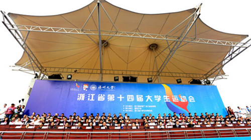 11月10日上午,随着会歌《蔚蓝青春》在温州大学北校区唱响,浙江省第十四届大学生运动会开幕。来自我省78所高校的93支代表队9300多位运动员、教练员、裁判员欢聚温州,参与田径等赛事的激烈角逐。浙江省大学生运动会由省教育厅、省体育局主办,是我省高校最高规格的重大体育赛事,从1958年开始,每四年举办一届,至今已成功举办了13届,前后经历57年,见证了省内各高校体育教育的发展历程和辉煌成果。