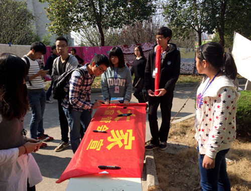 中午放学时分,路过的学生纷纷在横幅上庄重地签上自己的名字,大家都踊跃的参加此次活动,以此表明自己对待公寓文化的态度和对寝室良好生活氛围的热爱。这次活动得到了广大师生们的大力支持,截止下午上课前,已经有三百多师生签下自己的名字。