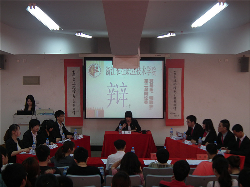 竞赛释放激情,辩论展现魅力。5月9日晚,浙江长征职业技术学院贸易系第二届“明致杯”辩论赛决赛在2218多媒体教室隆重举行。贸易系主任罗明、党总支副书记杨现华、团总支书记郑雪春、辅导员罗乐平出席了本次大赛并担任评委。