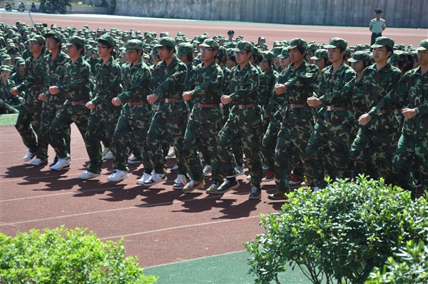 军训会操大会仪式在激昂的中国人民解放军进行曲中结束。
