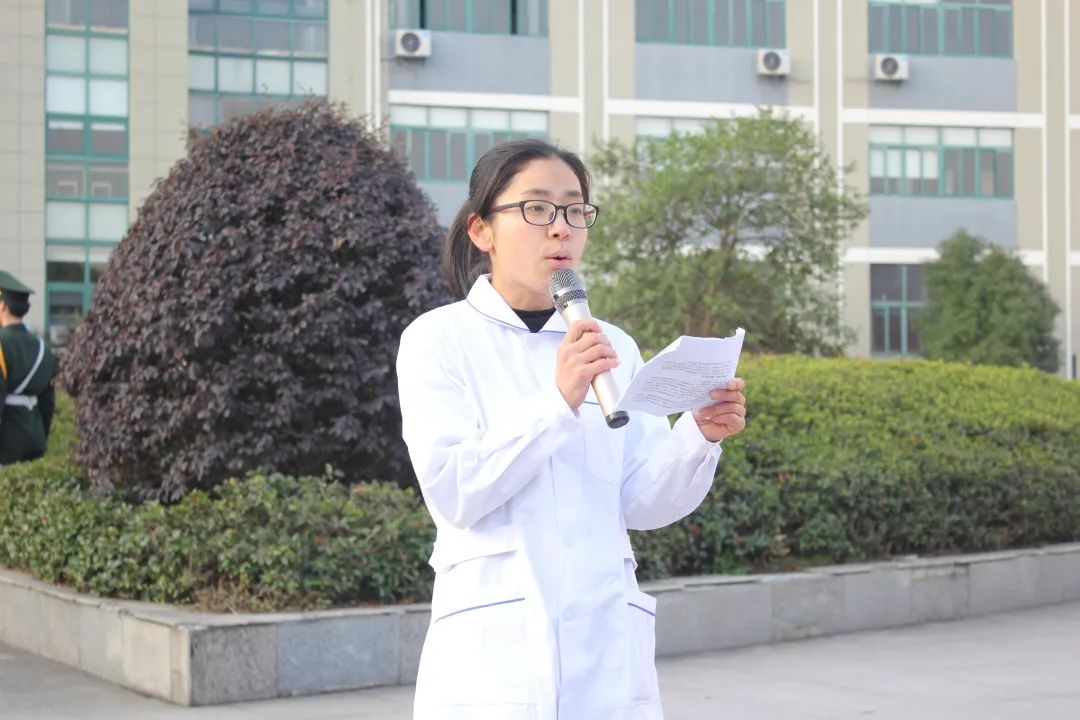 22护理5班王灵琰同学作为学生代表发言,她表示,作为生在红旗下长在春风里的新时代大学生,一定会接好历史的交接棒,把握好生命的每一天。