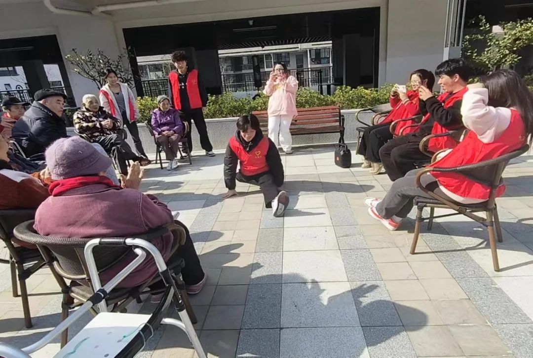同学们在工作人员的指导下,陪伴老人们散步、晒太阳、聊天。通过分享自己的大学生活,温暖老人的孤独心灵,并倾听老人讲述过去的故事;通过开展文娱表演,用青春热情带给老人们如阳光般的温暖。同学们在老人的故事中获取成长成才的宝贵经验,也在老同志们的欢声笑语中收获满满的成就感。
