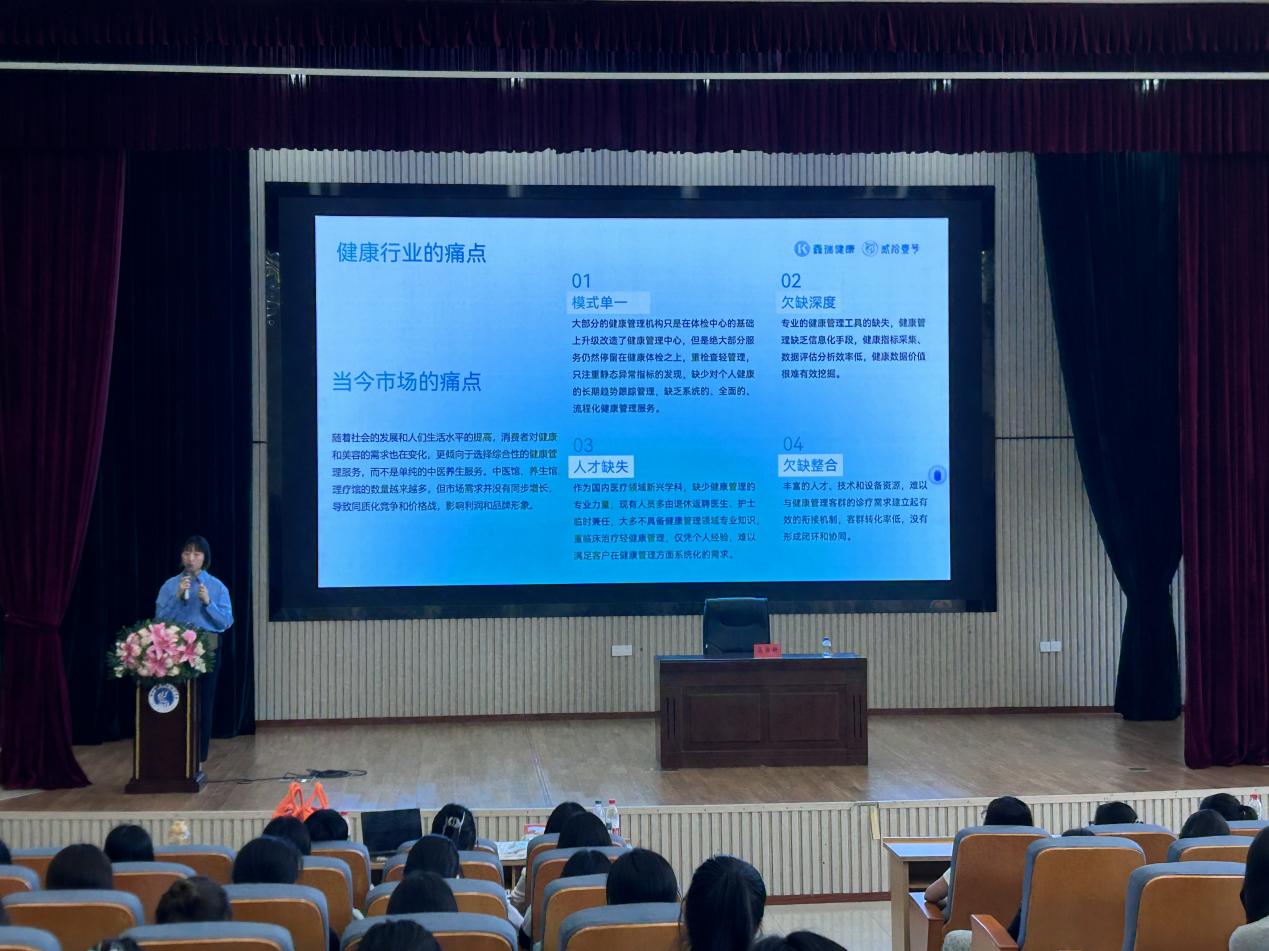 宣讲会上,马怡妍通过宣传片、动态数据可视化展示,生动呈现了企业“健康管理+数字科技”的双轮驱动战略,重点分享了企业在慢病干预、智慧康养等领域的创新成果。针对实习生培养,她表示:“企业不仅提供岗位技能培训,更通过‘导师制+项目制’帮助学生在真实业务场景中快速成长。”