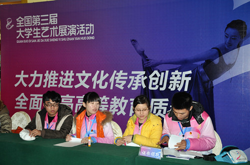 在1月初,我院成立了由院党委副书记任组长的接待工作领导小组,并从学院办公室、学生处、团委以及各系抽调一批能力强、有责任心的人员组成大艺展工作组,着手准备、安排接待、宣传等工作,周密部署了对口接待工作的具体任务、进程和要求,并制定了突发情况的应急预案。
